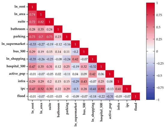 De and Vupru [] and Tomal [] analyzed the effect of the proximity of supermarkets to residences on sales prices and rents, respectively. De and Vupru [] indicated a negative relationship, i.e., the shorter the distance to the supermarket, the higher the property price. On the other hand, Tomal [] found a positive relationship, contrary to common sense that the relationship should be negative. He argues that supermarkets can generate negative externalities, such as noise pollution, which can negatively influence the price of rent.