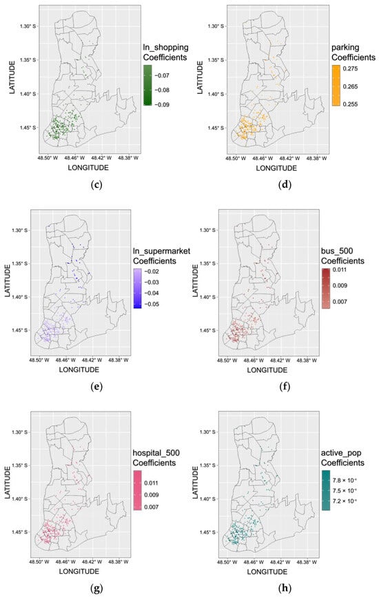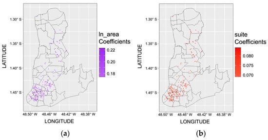 These methodologies were crucial in uncovering essential dynamics related to the operation of Belém’s rental market, introducing a new dimension to our analyses. The inclusion of spatial approaches is particularly valuable as they offer a superior understanding of the spatial dependencies and heterogeneities inherent in the housing market compared with traditional analyses. The impact of the attributes on the rental price of the focal property was analyzed, as well as the influence of this property on neighboring properties. Finally, we analyzed the existence of geographical heterogeneity in the relationships between housing rental prices and their determinants.