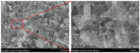 SEM images of concrete specimens after 225 freeze–thaw cycles at 30,000 mg/kg.