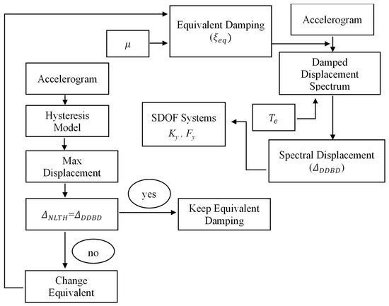 The algorithm reported in Figure 1 is aimed at determining a value in order to have results from DDBD equal to nonlinear time history analysis and is summarized in the following steps: