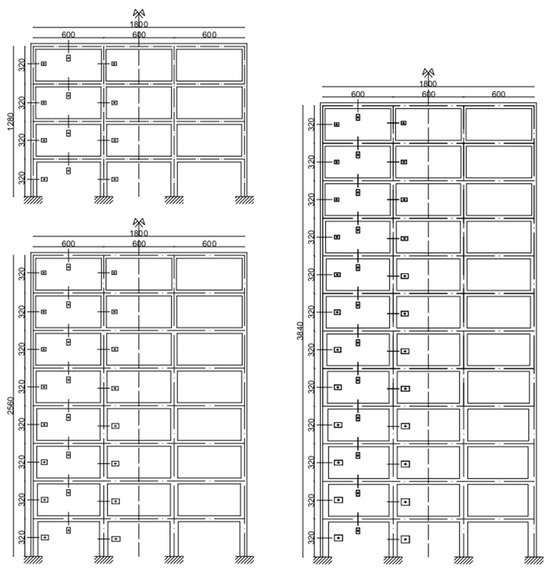 The Takeda “fat” model is known to be appropriate for reinforced concrete frames [36] and is characterized by , , :