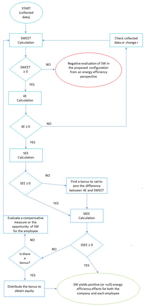34]. The proposed metrics not only enable users to determine the overall advantage of SW from an energy-saving perspective, but also assess whether such a practice benefits both employers and employees. Furthermore, the research introduces a method, detailed below, that describes how to collect and organize data for these indices.