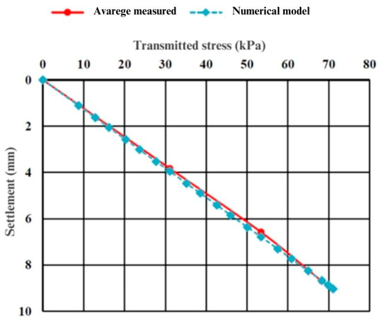 where Id is the layer-embedding factor. The other terms of the equation have already been qualified throughout the text, and their values were as follows: E = 18,800 kN/m2, B = 16.5 m, ν = 0.3, Is.Ih = 0.16, and Id = 1—the value for the non-embedded layer, which is the case studied.