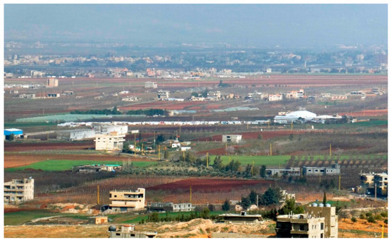 - Kassatly, H. Terres De Bekaa: L‘Amenagement de L‘Habitat Rural sur la Haut Plateau Libanais; Geuthnew: Paris, France, 2000; pp. 31–60. [Google Scholar]