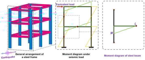 - The subsequent steps of the ongoing research encompass the following: (1) improving the connections in terms of the seismic performance and investigating the impact of different parameters on its seismic behavior, such as the weakening parameters of the dog-bone steel beam section, the thickness of the restrained plates, the size of the holes at the bolted connections in the restrained region, the tightening torque of the bolts, the restraint provided by the floor slab, the influence of vertical load, etc.; (2) establishing a theoretical model for the moment–rotation analysis of the proposed connections and proposing a seismic design method for the connections considering vertical loads based on the design abacus of Montuori [39]; (3) developing the numerical model of the connections; and (4) investigating moment-resisting frames and steel-braced frames using the connections on the seismic performance, with various parameters including the weakening parameters of the dog-bone beam section, the restraint effect of the restrained plates, the arrangement of braces, etc.