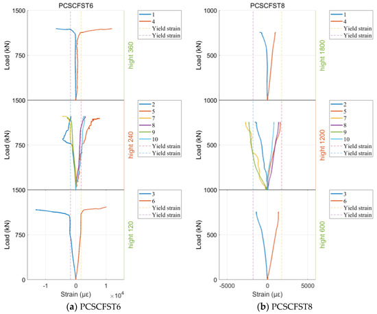 3.4. Load–Strain Curves for the Entire Column