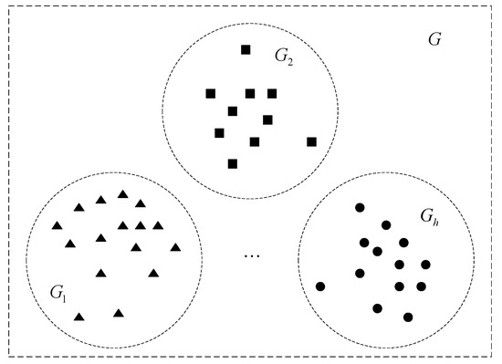 A new classification was derived from the first stage of discrimination and categorization, which served as the initial classification for the second stage. Denote the elements in part by and by the number of elements, thus computing the preference vector of according to Equations (4) and (5) and the degree of aggregation of and by Equation (3).