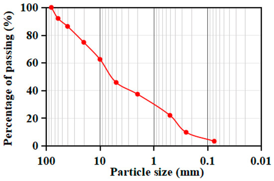 In the process of infrastructure construction in mountainous cities, a large number of soil–rock mixed backfills were formed due to site leveling; therefore, some lines inevitably pass through these soil–rock mixed backfill areas. Some other scholars have carried out research on the characteristics of soil–rock mixture (SRM). Simoni et al. [13] conducted triaxial tests on soil–rock mixtures to analyze the stress–strain relationship, and the results showed that such materials had obvious shear expansibility; Huang Wenjian et al. [14] and Cao Wengui et al. [15] used the orthogonal experimental design method to analyze the influence of various factors such as rock content on the physical and mechanical properties of SRM, among which rock content has the greatest influence on the shear strength; Xia Jiaguo et al. [16,17] studied the effects of rock content and confining pressure on the mechanical properties of SRM using a large triaxial shear instrument, the results showed that the stress–shear displacement curve had a “jump” phenomenon, and the shear index parameters first increased and then decreased with the increase in rock content, and always increased with the increase in confining pressure. The preceding research on soil–rock mixture characteristics enables the development of a SRM similar material that meets the similarity relationships and certain failure characteristics in the model test.