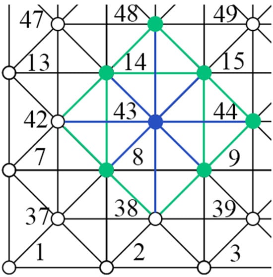 (2) In addition, because the number of bearing nodes in the grid structure only accounts for a small part of the number of nodes in the whole structure, the screening of important nodes will affect the accuracy of the analysis if it is limited to the position of the bearing. For some nodes, there are many components connected to the non-boundary position of the whole structure, which can generally be regarded as important nodes [16].