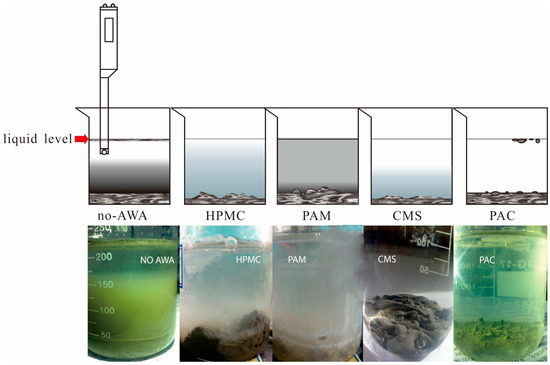 All the AWAs and equipment were received from Qingdao Kremer New Building Materials Technology Co., Ltd., Qingdao, China. The degree of substitution (DS) was above 0.2 for CMS. The apparent viscosity of PAC was 15 mPa·s. The surface tension of the 2% HPMC solution ranged from 42 to 56 dyn·cm−1. The average molecular weight of PAM was 5,000,000–6,000,000. All chemicals used were of analytical grade [26].