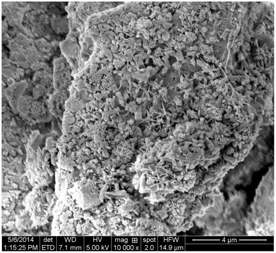 Scanning electron micrograph of the dried cement paste with HPMC.