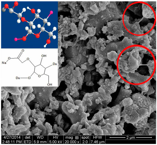 Scanning electron micrograph of the dried cement paste with CMS.