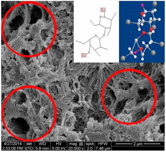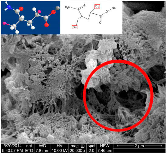 The extended fibrous morphology of the HPMC and related well-like structures suggest that the templates are capable of topologically guiding hydrate crystal growth. As demonstrated by analogous polymer–silica systems, the high-surface-area interfaces that are presented can thermodynamically stabilize certain crystal polymorphs and orientations while hindering others. The pores generated along such organic–inorganic composites thus have a high probability of persisting as flaws in the hardened cement matrix [47]. This finding illustrates how even ostensibly inert polymeric AWAs are capable of profoundly altering cement microstructures and developmental pathways.
