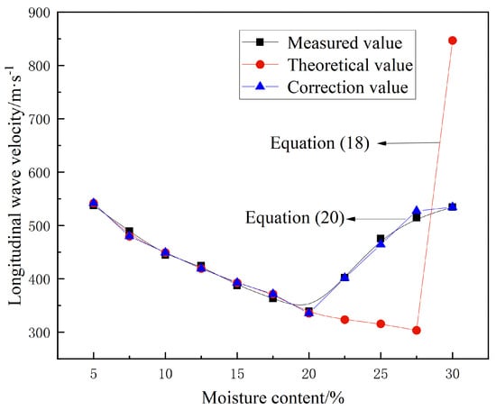 4.2. Theoretical Analysis of Relation between Moisture Content and Wave Velocity