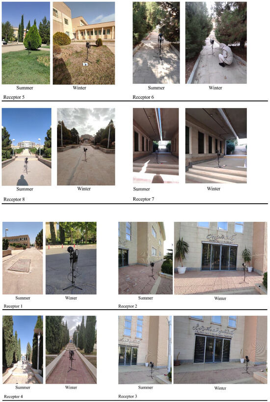 Data for each point were collected hourly. Starting at 8:00 a.m., the device had to stay still at the location for five minutes and record and save the meteorological data of the chosen spot every twenty seconds. Then, it was moved to the next chosen spot. After every hour, the measurement was reset to the initial measurement point. Data collection was completed after 12 h.