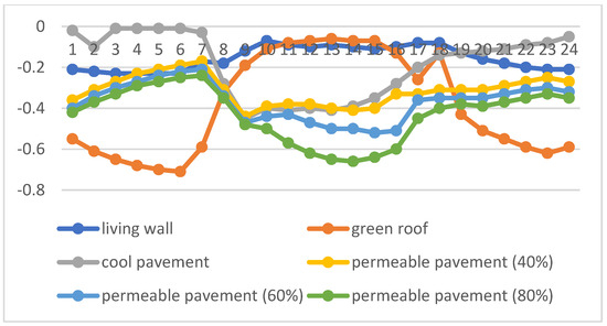 In addition, according to Table 8, Table 9, Table 12 and Table 13, permeable pavement considerably impacts the changes in air temperature over the summer and winter seasons. Additionally, it improves thermal comfort. Based on these tables, the PET index is improved when permeable pavements are added.