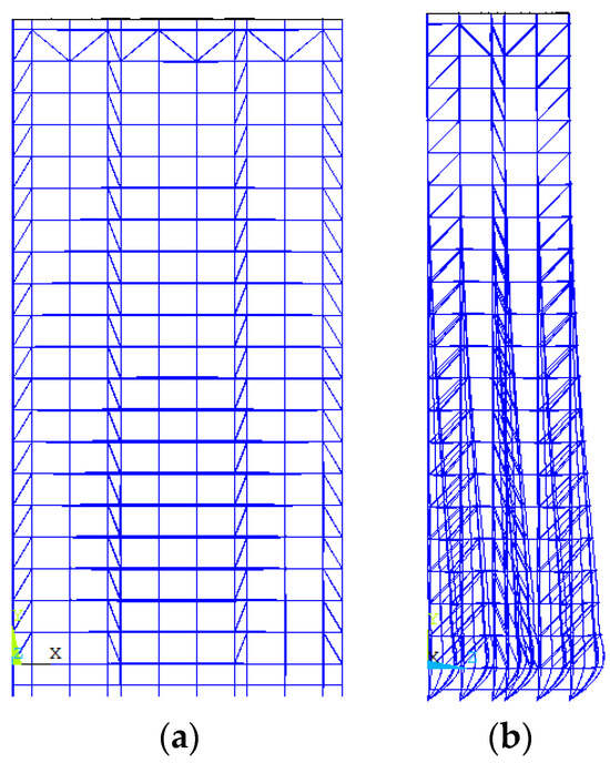 First order buckling diagram of disc buckle steel pipe support. (a) Front view; (b) Left view.