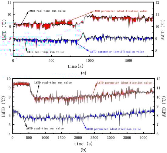 - Due to the adoption of two temperature differences as reward functions in this paper, and since the reward function is only related to the temperature values, the control of the flow rate only considered operating condition changes in the hot-side flow rate. In the comparison under various operating conditions, using the relative error of the AMTD as the reward function showed a higher matching degree and identification accuracy compared to using the relative error of the LMTD as the reward function.