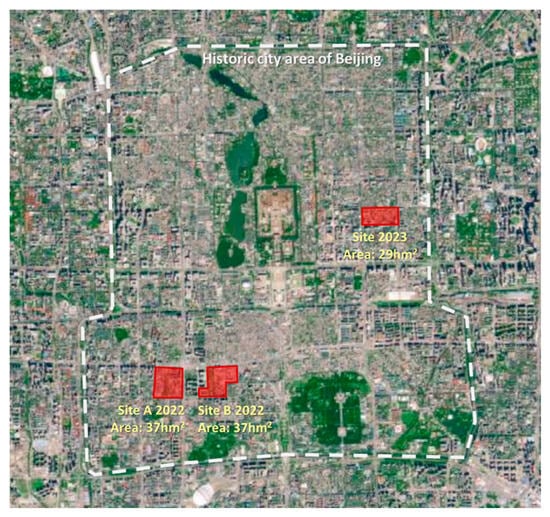 Locations and basic information of the three sites (drawn by the author, base map: Baidu map (https://map.baidu.com/ (accessed on 18 February 2024))).