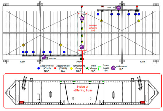 Wireless sensor networks (WSNs) are anticipated to enhance the ability to capture dynamic structural behaviors through dense instrumentation and a multihop communication protocol, while also facilitating the evaluation of structural conditions [14,68,69,70]. However, the complexity of bridges introduces numerous monitoring parameters and structural degrees of freedom, rendering it impractical and unreasonable to deploy sensors for each one [71,72,73,74]. The aim of a sensor optimization layout is to achieve comprehensive structural information for bridges using the minimum number of sensors possible [75,76,77,78]. Consequently, scholars engage in detailed research on criteria for structural modal evaluation and network performance assessment. Presently, WSN-based structural health monitoring (SHM) systems have been successfully deployed on various full-scale bridges, including the Golden Gate Bridge in the United States [79], the second Jindo Bridge in Korea [80], and the New Carquinez Bridge in the United States.