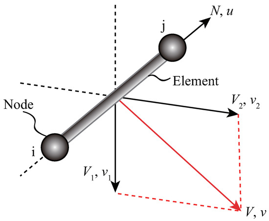 While defining the macroelement through the User Element Subroutine (UEL), the structure of a two-node element is adopted. These two nodes might either coincide or possess a certain distance between them. For the purpose of this explanation, we designate these nodes as i and j. As a result, the displacement increment function vector for the element, denoted as , can be construed as follows: