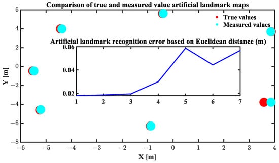 As shown in Table 1, the measured values are obtained from the artificial landmark detection algorithm based on laser reflection intensity. Euclidean distances are employed to evaluate the error of each artificial landmark circle fitting.
