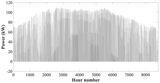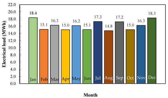 The case investigated in this study for which the multi-generation system would provide load is a complex of 100 residential buildings located in the U.S., namely in Honolulu, Hawaii. The place is at 157.8581° W and 21.3099° N. The load values were obtained directly from the bills, the annual profile of which is depicted in Figure 2. Moreover, Table 1 shares the information about the characteristics of different system components, while the considered values for the economic criteria are provided in Table 2. Additionally, the typical meteorological year (TMY) data, found in [53], were utilized for the ambient and radiation input parameters in modeling.