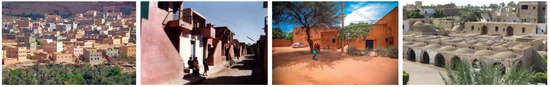 Figure 7. From left to right: Miner’s Township, Aranya Low-Cost Housing, Niamey 2000, and Gourna Village (ArchDaily).