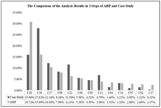 Figure 8 shows the comparison of the analysis results in the two steps of AHP and case study analysis. The factor that has been compared in these two methods is “The criteria impact importance in the housing projects cost reduction”.