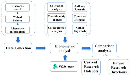 Previous studies have highlighted the objectivity and reliability of bibliometric reviews [,]. This study employed a bibliometric analysis to scrutinize retrieved articles. Figure 1 illustrates the research framework. Initially, the relevant literature was collected from designated databases, followed by meticulous screening based on predetermined criteria. Subsequently, a thorough bibliometric analysis of the refined literature was conducted by constructing co-citation and co-authorship networks to encapsulate the research landscape. The current research status was then evaluated, and the disparities between China and other nations were analyzed through a comparative assessment. Finally, the current research hotspots in prefabricated construction were summarized, and suggestions for future research directions in the field of prefabricated buildings were proposed. Figure 1 outlines the approach adopted for this research.