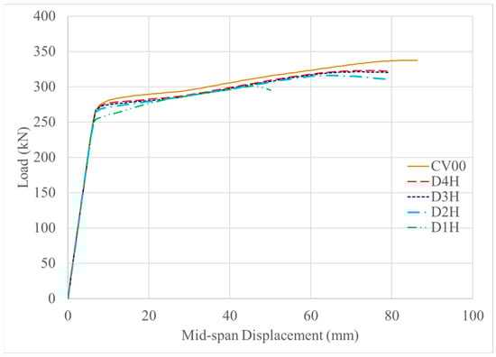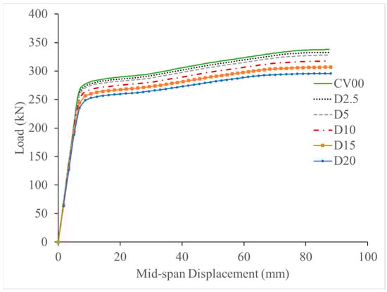 | Beam ID | Yield Load (kN) | Reduction in Yield Load Capacity (%) | Ultimate Load (kN) | Reduction in Ultimate Load Capacity (%) |