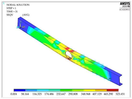 - Manoharan, A.C.; Tripathi, R.K. Analysis of steel beams with circular opening. Int. J. Civ. Eng. Technol. 2017, 8, 411–422. [Google Scholar]