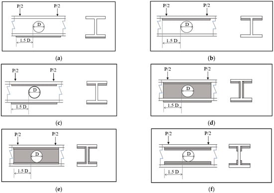 - Altaee, M.J.; Cunningham, L.S.; Gillie, M. Experimental investigation of CFRP-strengthened steel beams with web openings. J. Constr. Steel Res. 2017, 138, 750–760. [Google Scholar] [CrossRef]