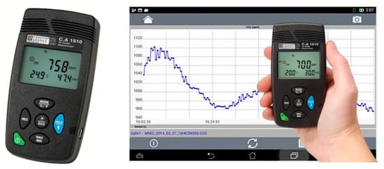In detail, we first consider the Chauvin Arnoux 1510 sensor: this device allows for the simultaneous detection of temperature, relative humidity, and CO2 concentration in ppm (Figure 2). The sensor is quite reliable in terms of measurement and has been tested in different contexts [18]; data can be retrieved from the instrument either by downloading or by connecting via Bluetooth to the device. In the second class, we test the Z-Wave sensor [21] from Smart-D-Home, and the 4-in-1 sensor and the 9-in-1 sensor (Figure 3). These sensors have also proven to be quite reliable in terms of measurement results, and upload data to an external network connected to an external gateway. While the method is conceptually interesting, it is weak from a cybersecurity standpoint as the gateway could be susceptible to cyber-attacks. In addition, mesh networks as in the Z-Wave communication protocol require a gateway for every cluster of sensors, which implies that at least one gateway is required for every building.
