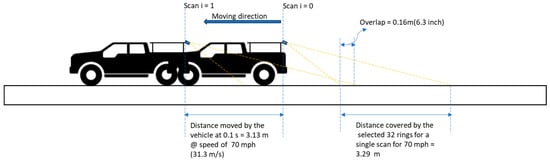 Schematic diagram of the overlap between two subsequent LiDAR scans at a speed of 70 mph.