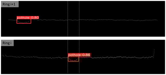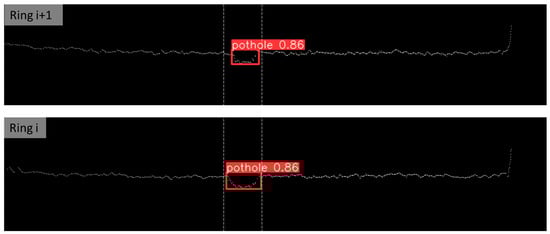 Consecutive LiDAR rings corresponding to the same pothole (overlap).