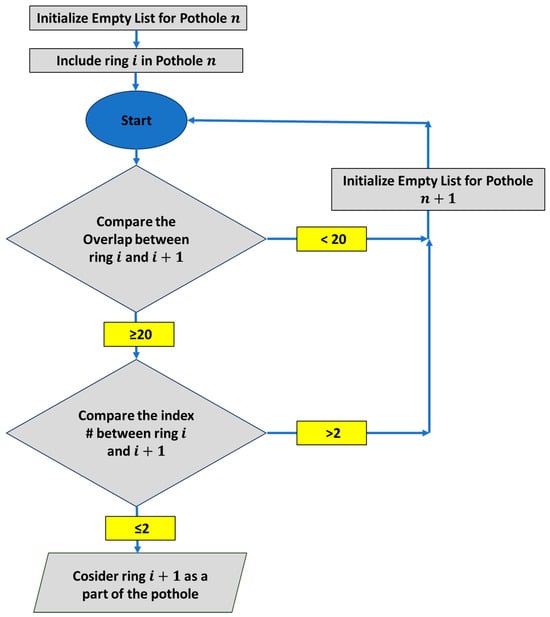 Subsequent LiDAR rings corresponding to different potholes (non-overlap).