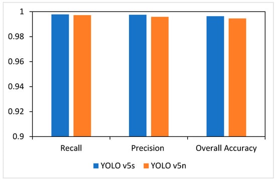 Accuracy comparison between YOLO v5s and YOLO v5n.