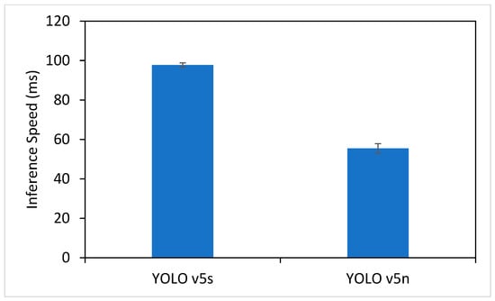 Inference speed comparison between YOLO v5s and YOLO v5n.