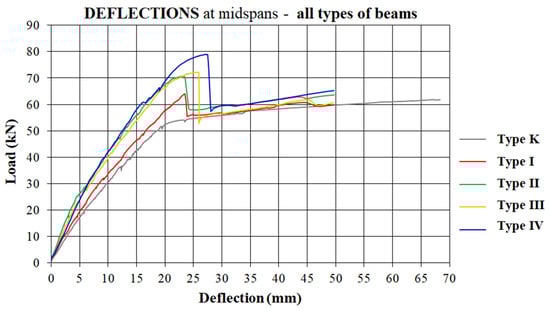 Comparison of deflection diagrams at mid-spans of strengthened beam (type IV) models.