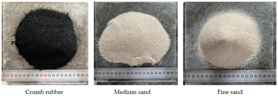 From the SEM images showing the morphology of the quartz sand and rubber (Figure 12), it can be observed that the surface of the quartz sand is smooth, while the rubber surface is rough, with numerous protrusions. This explains why the compressive strength decreased as the rubber replacement ratio increased in the fresh T-UHPAC mixture, as it led to the increased number of weak interfaces between the matrix and the aggregates.