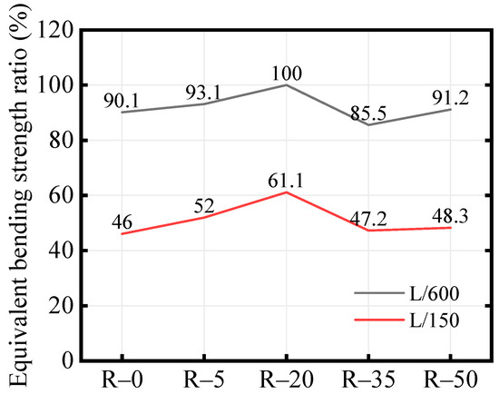The effect of the replacement ratio of CR on the equivalent bending strength ratio.