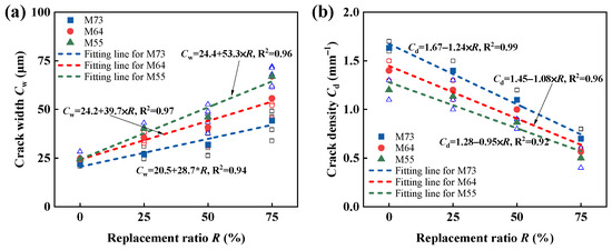 Tensile crack characteristics. (a) Crack width; (b) crack density.