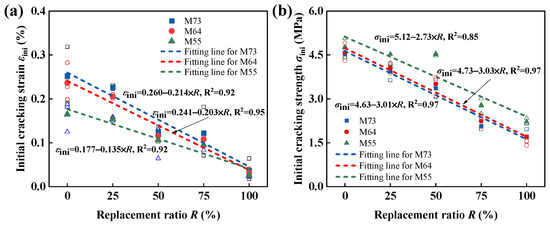 Tensile crack initiation characteristics. (a) Initial cracking strain; (b) Initial cracking strength.