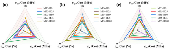 Radar chart of economic indices. (a) M73; (b) M64; (c) M55.