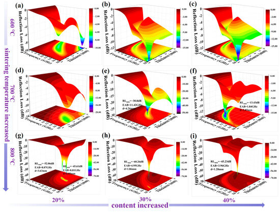| Samples | RLmin (dB) | Frequency (GHz) | EAB, RL < −10 dB | Thickness (mm) |