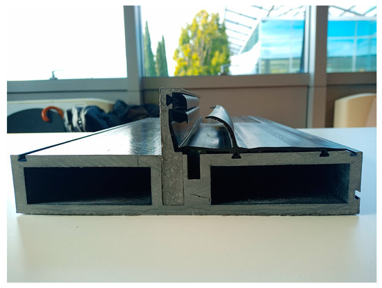 - Cutting and machining—due to their characteristics, the biocomposite profiles can be cut and machined by changing the equipment tool, in comparison to the aluminum profiles. However, for further developments a substantial weight reduction needs to be considered to enhance overall economic efficiency.