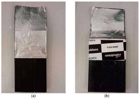 Figure 4. Samples for opaque façade technological system tests: air, water tightness, and wind load-resistant technological system (external side) (a); vapor barrier technological system (internal side) (b).- ○