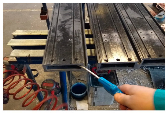 Cutting and machining—an important phase is the cutting and machining, which involves the precision cutting and shaping of the biocomposite profile to meet specific design requirements. This process typically includes tasks such as sawing, milling, drilling, and tapping to create precise dimensions and features. Overall, the cutting and machining phase is essential for transforming raw profiles bars into functional components ready for assembly in the production line. Preliminary tests were conducted on the biocomposite profile sample for cutting and machining activities with the aim to investigate its behavior, and to identify the best equipment to use to identify the most suitable tool for the biocomposite material (Figure 5). The tests revealed good properties for cutting, allowing the operation to take place without provoking any cracks or damage. However, the standard equipment used for aluminum is not suitable for the biocomposite due to the hard properties of basalt fibers, which ruined the machining during the activities. Therefore, different tools and systems need to be used. Moreover, due to the amount of resin included in biocomposite materials, a fully equipped vacuum system is needed for the generated dusts, as illustrated in Figure 6.