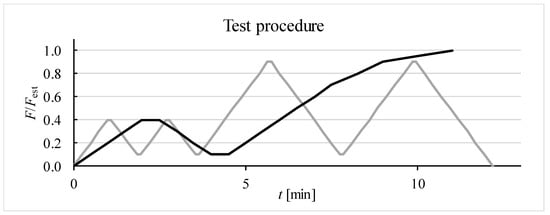 Applied test procedure (grey) in comparison to EN 26891:1991 (black) [].
